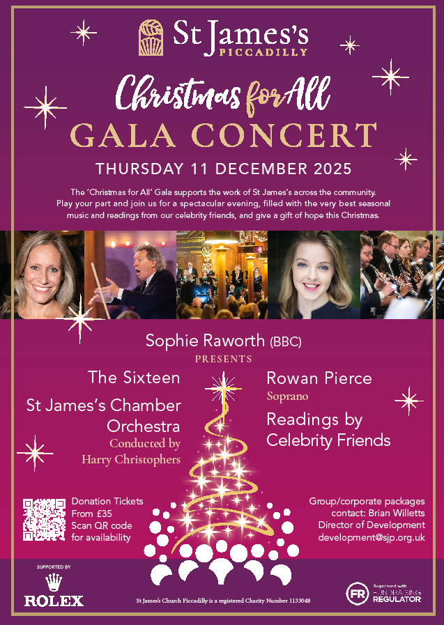Join your host, Barbara, for an evening of laughter, games, prizes, and festive fun — all in aid of the Christmas for All campaign at St James’s Church, Piccadilly.