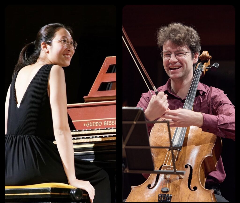 A programme for Cello and Piano. Kosta Popovic and Valentina Wang performing works by J. S. Bach, R. Schumann and G. Walker.