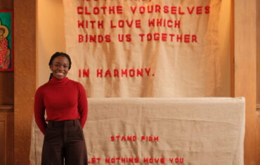 Joke Amusan’s powerful altarpiece and altar covering for Lent express a story of sacred love, prayer and hope in God’s steadfast presence.